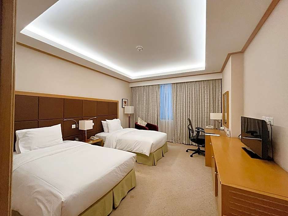 City view, work desk, ergonomic chair, mini-fridge Relax in this stylish Twin Room with a bathtub and energizing bath amenities. Enjoy a restful night's sleep in the Suite Dreams by Serta beds, which provide the perfect balance between comfort and support. Work in comfort at the desk with ergonomic chair. Watch a program on the 32-inch LCD TV or surf the web with complimentary WiFi access. Stay connected to the office with our 24-hour business center. This room also features a mini-fridge, adjustable air-conditioning, instant tea and coffee and an iron/ironing board to make you feel at home.